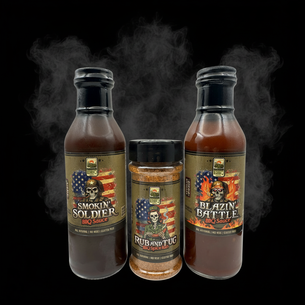 The Barracks BBQ Special Forces Bundle is the full damn arsenal. Three bottles. Three flavors. One mission: turn your grill into a warzone of flavor. This is the ONLY way to get our legendary Rub & Tug – a bundle-exclusive spice rub that goes hard as hell on anything you throw it at.